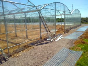 Ils ne reviennent que le 18 juin pour continuer à monter les arceaux, poser les chéneaux (gouttières), les rails qui permettront la fixation des bâches, les pignons en plexiglas, une partie des moteurs qui commanderont les ouvrants…